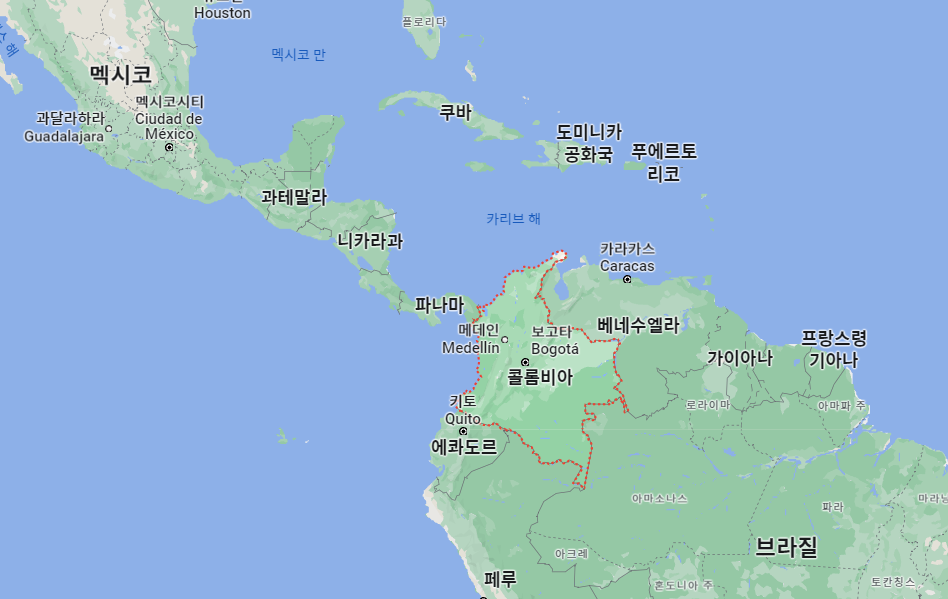 정리하자면 남미에 있는 공화국 이름은 O, 공화국은 ㅇ 밭침이니 O를 써서 Colombia입니다.